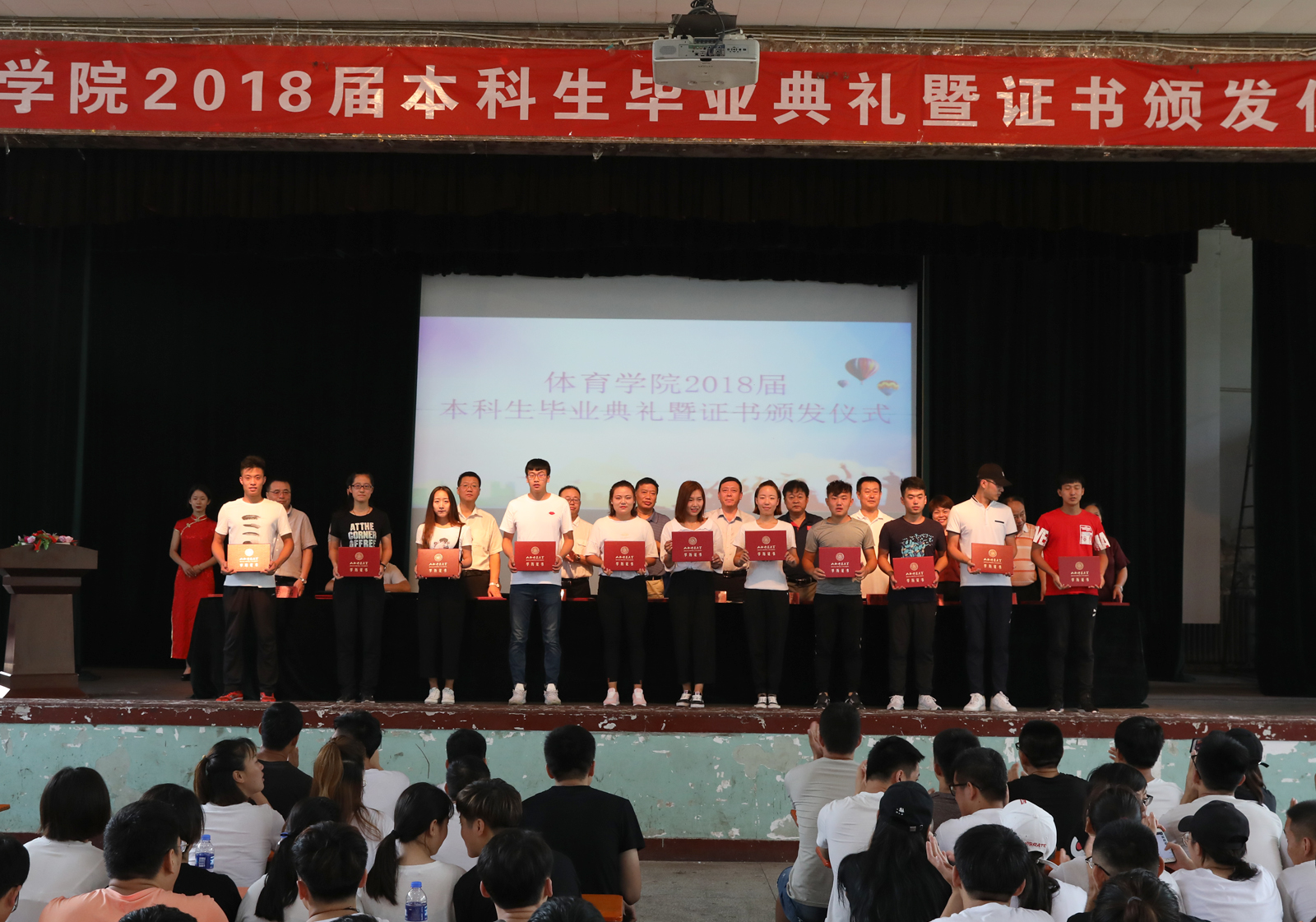 仪式在庄严雄浑的国歌声中拉开了序幕。首先,副院长王彤宣读明升MS882018届本科毕业生名单,院党委书记李学刚宣读校级优秀毕业生名单。出席仪式的领导为400余名毕业生依次颁发毕业证书。