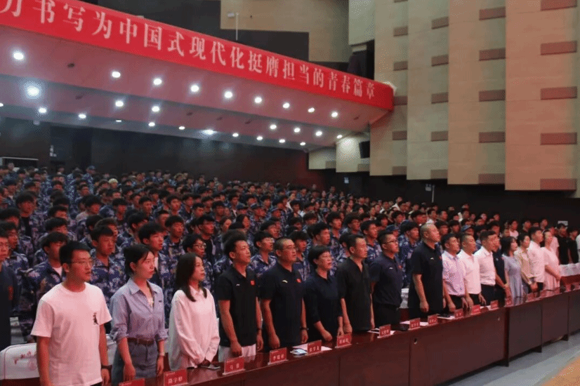 全体参会人员肃立齐唱国歌,激昂的旋律凝聚起浓厚的爱国情怀,为整场迎新活动奠定了庄重的基调。