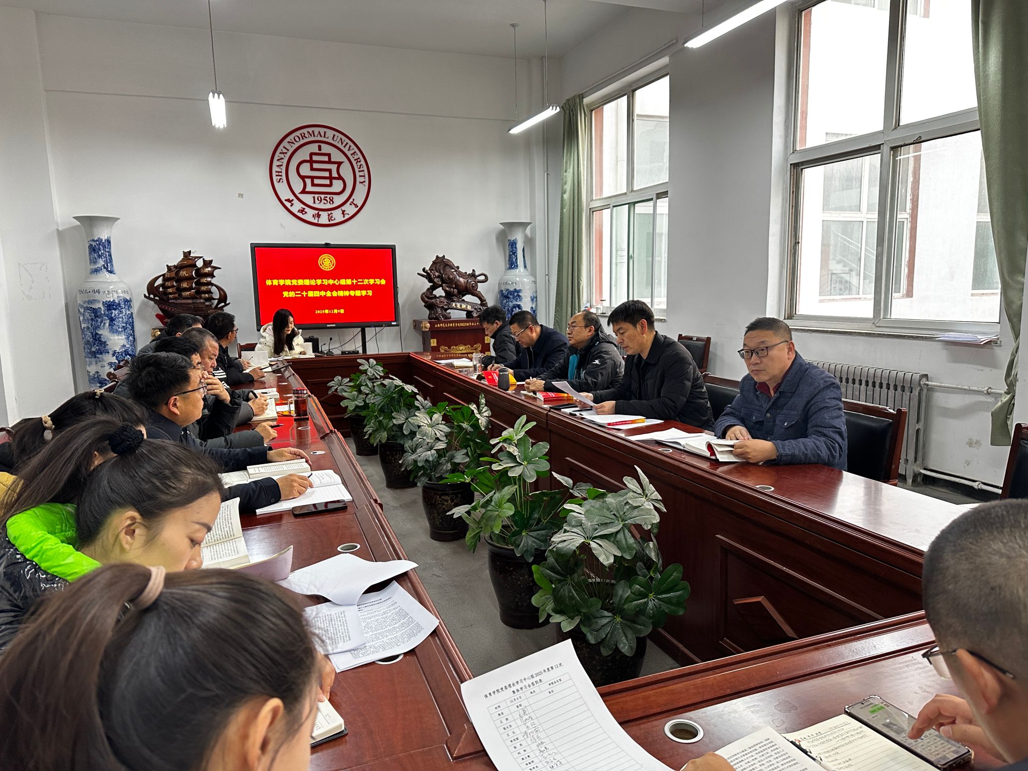 会议强调,要持续深化理论武装,把学习宣传贯彻党的二十届四中全会精神作为当前和今后一个时期的重要政治任务,切实把思想和行动统一到党中央决策部署上来。要紧扣“十五五”规划建议要求,聚焦体育学科特色,优化人才培养方案,强化科研创新驱动,提升服务社会能力,推动学院各项工作再上新台阶。中心组成员要发挥示范引领作用,带头学深悟透、融会贯通,各党支部要层层传导学习压力,确保理论学习入脑入心、落地见效。